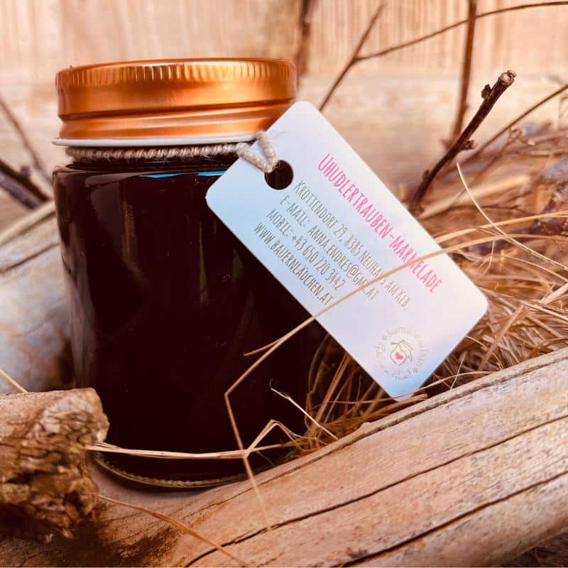 Uhudlertrauben, Zucker, Zitronensaft, Geliermittel: Pektine